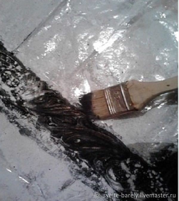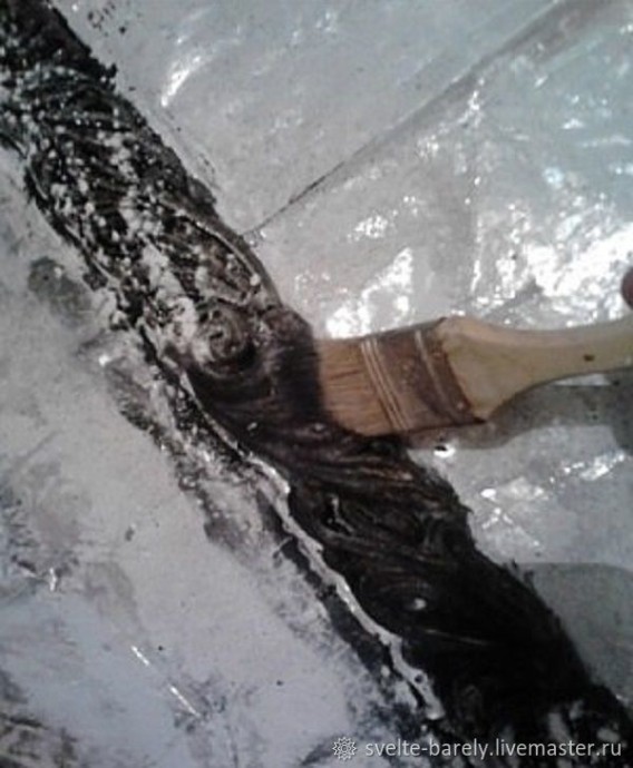 Не дожидаясь высыхания черного цвета присыпаем раму детской присыпкой.