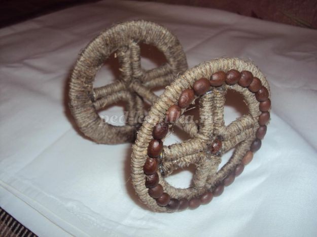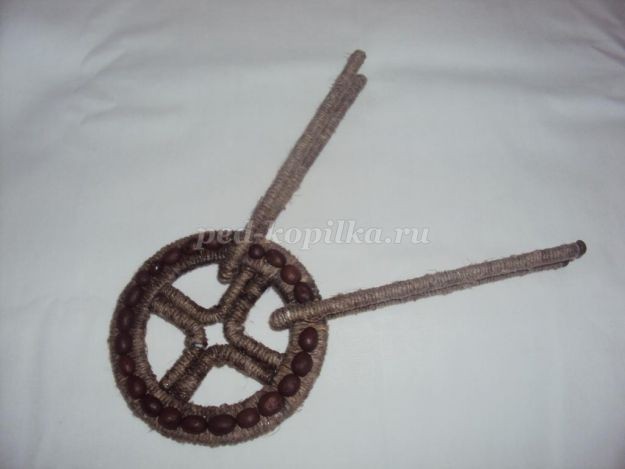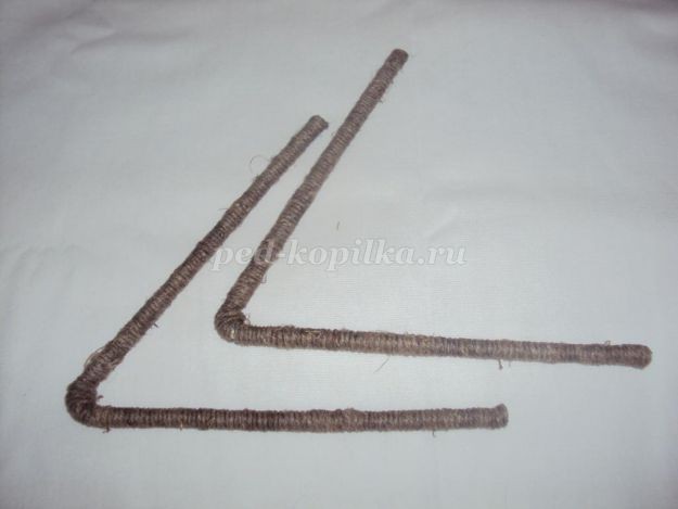 12. Получившуюся конструкцию обматываем джутовым шпагатом. Таких заготовок понадобится 2 штуки.