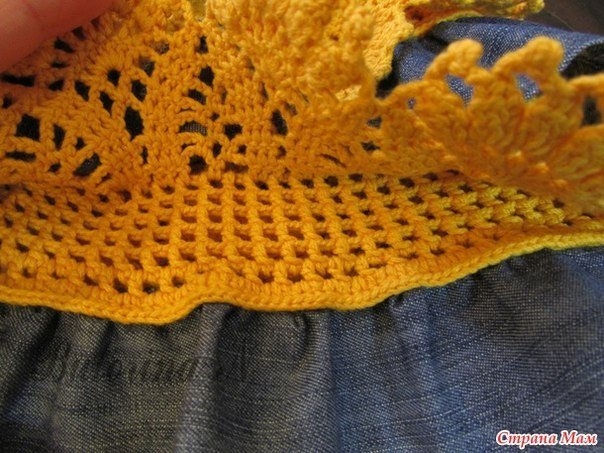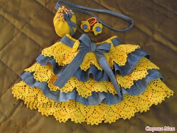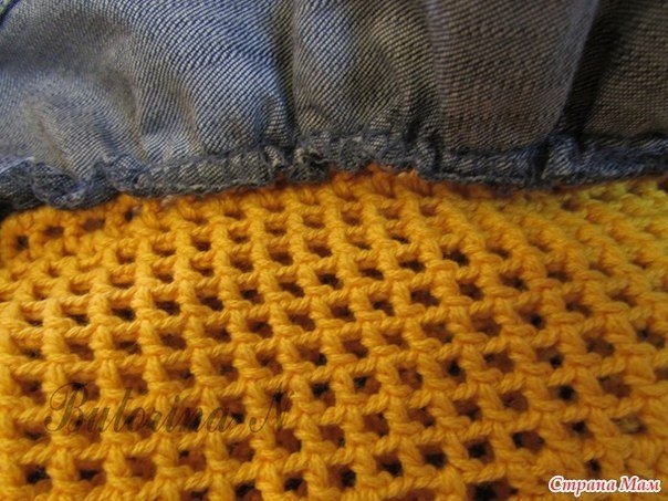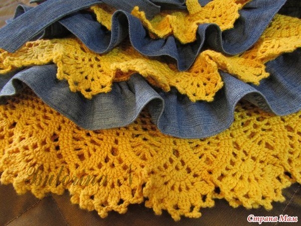 Оригинальная юбочкаОригинальная юбочка это удачный эксперимент со старыми джинсами и нитками.