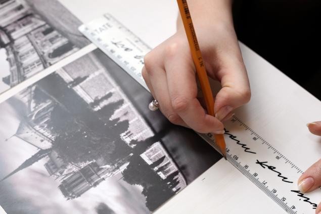 С помощью линейки и карандаша делаем на столешнице разметки для будущих картинок.