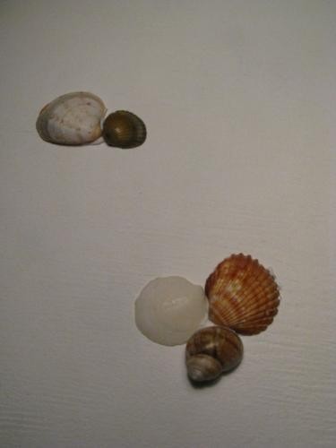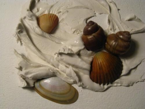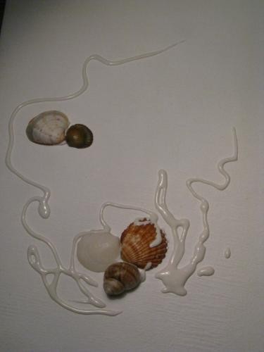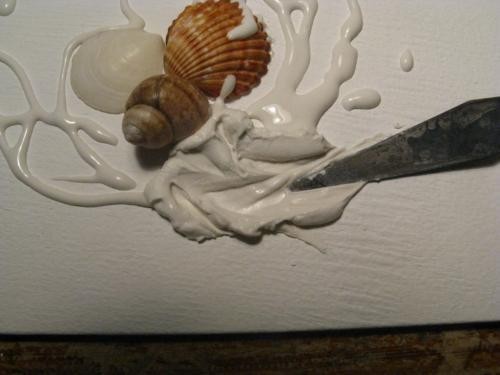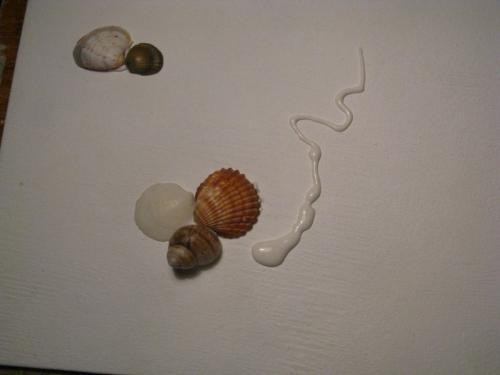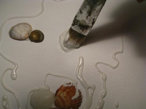 2. Клеим ракушки и др. мелочь на жидкие гвозди. Можно чтобы клей выглядывал.