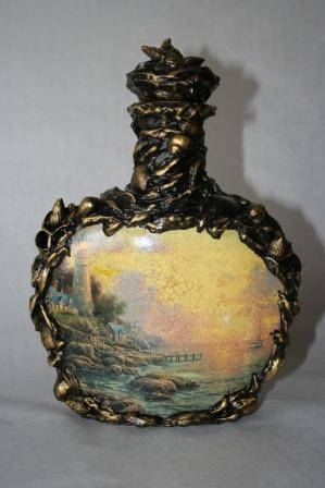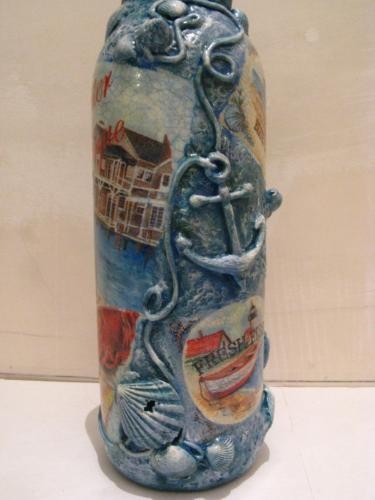 4. Сушим частями, на боку постепенно заполняем всю бутылку узором.