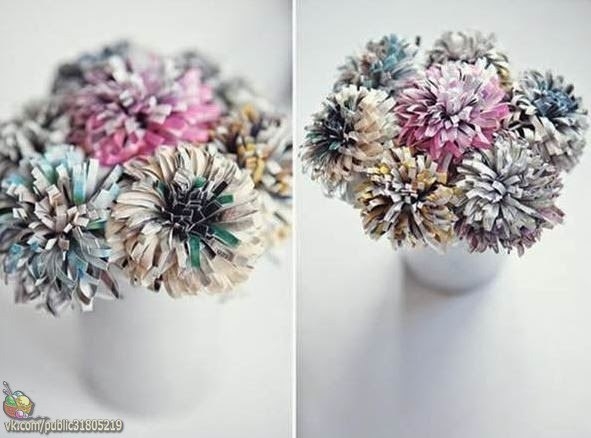 Цветы из старых журналов.