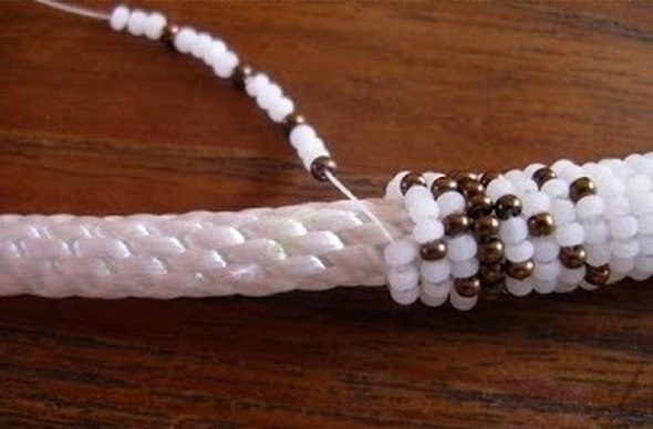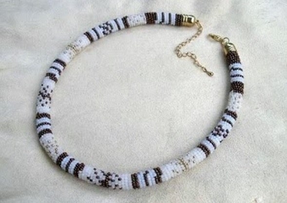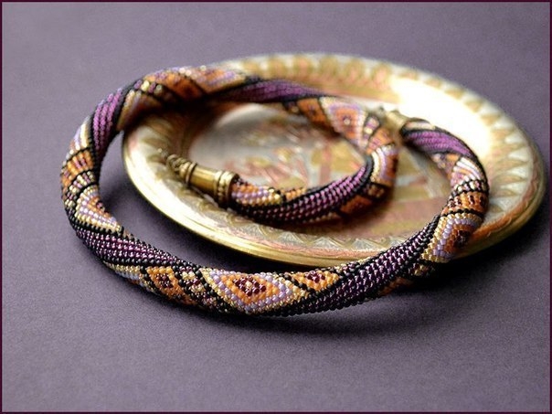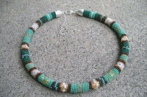 Бисерный жгут, связанный крючком, может стать браслетом, ожерельем или поясом.