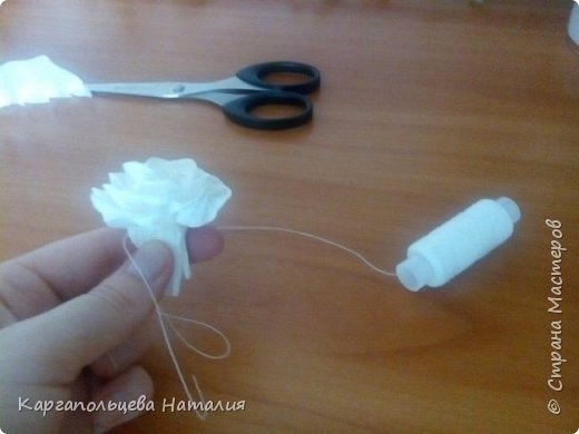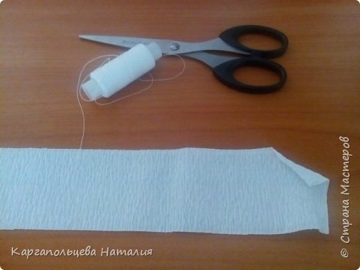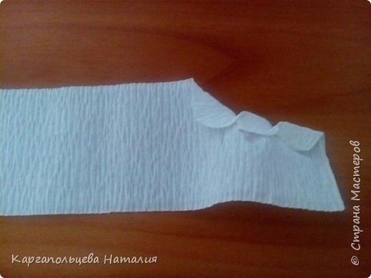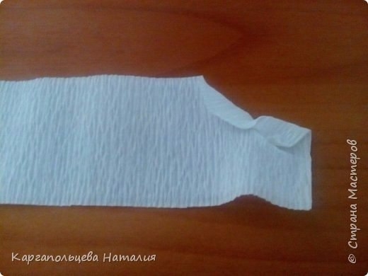Роза из гофрированной бумагиМатериалы: гофрированная бумага, проволока, шпажка, клей, фольга, конфета, карандаш, линейкаПроцесс:Шаг 1.Вырезаем из гофрированной для цветка 15 прямоу...