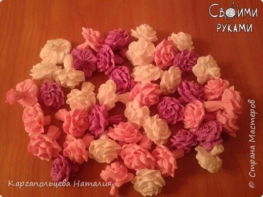 Цветы из гофрированной бумагиМожно составить смешанный букет из цветов с конфетами, используя и другие виды аналогичных цветов, мастер-классы по созданию которых мы разместили ране...
