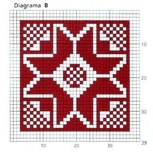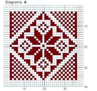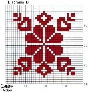 Для тех, кто умеет вязать-всё понятно... А для начинающих-этого конечно недостаточно, поэтому и возникают подобные вопросы, как у "марина".Неопытным вязальщицам надо поискать сайты для начинающих, и если постоянно вязать, то с опытом придёт и понимание, как воплотить те или иные идеи.А размеры квадрата- по 39 петель в ширину и 39 рядов в высоту каждый (присмотритесь к цифрам)на рисунках. А вязать орнамент тоже надо уметь, неопытным вязальщицам не осилить!