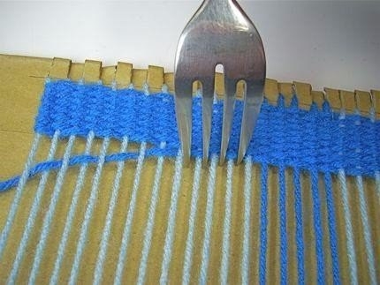 Картон и вилка вместо ткацкого станка.
