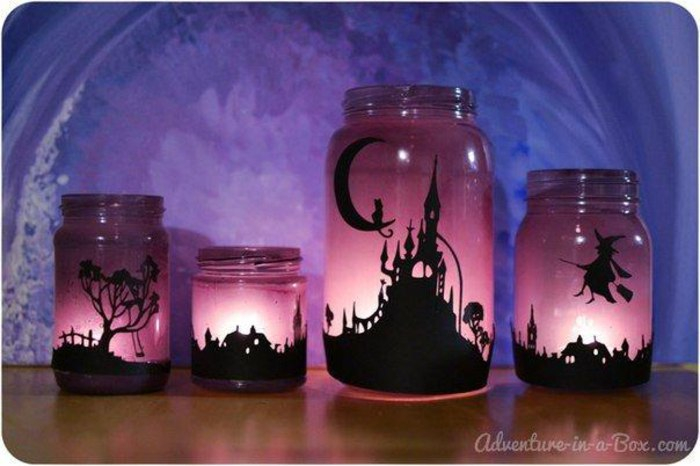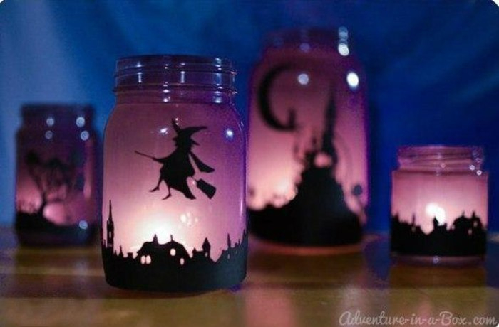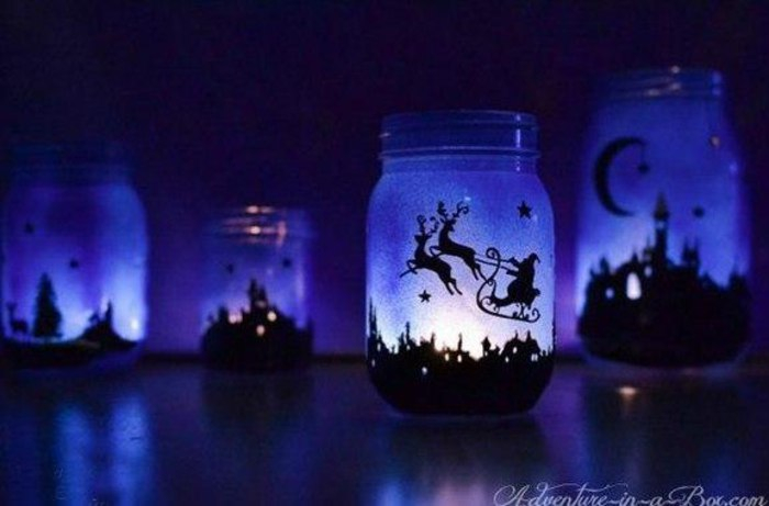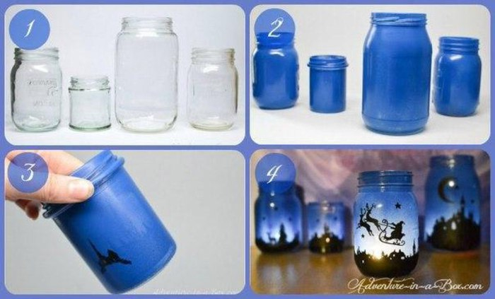 банку окрашиваем внутри, а силуэты наклеиваем снаружи,свеча является источником света?