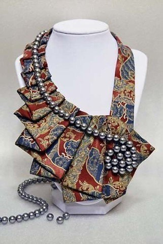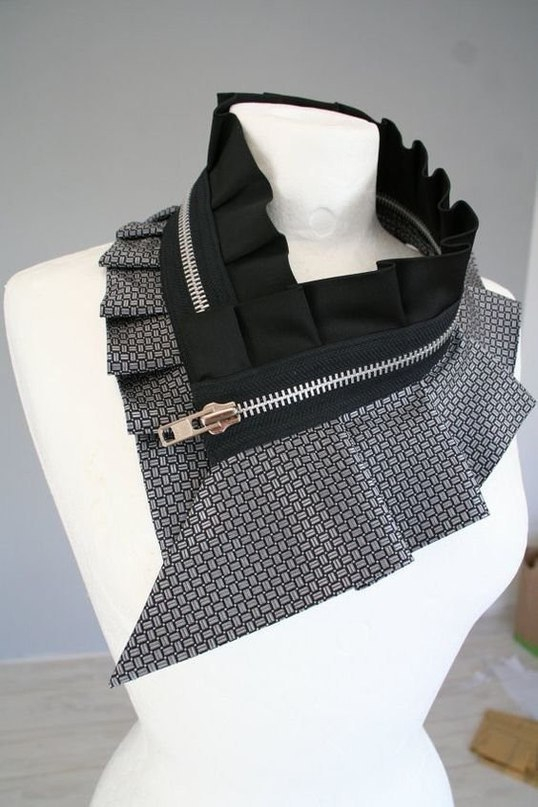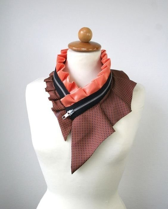 А мне очень понравилась эта идея. Такое украшение на шею можно надеть на плотное однотонное не отрезное узкое платье без воротника.