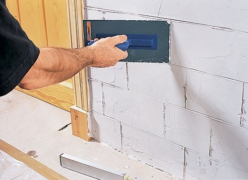 Имитация кирпичной кладкиИнтересная идея из обычного плиточного клея.