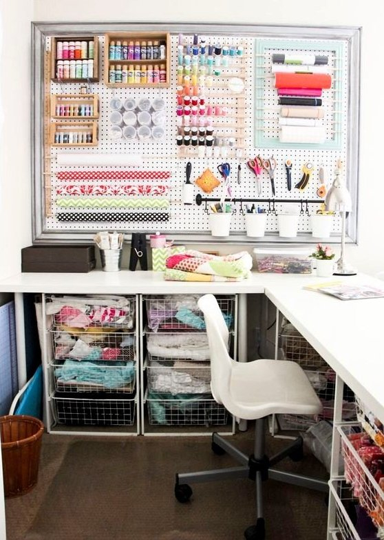 Здравствуйте. Мне очень нравится такое оформление творческого пространства.А как сделать творческое пространство тем кто занимается вязанием на машине , крючком, и плетением из бисера и т.д.?