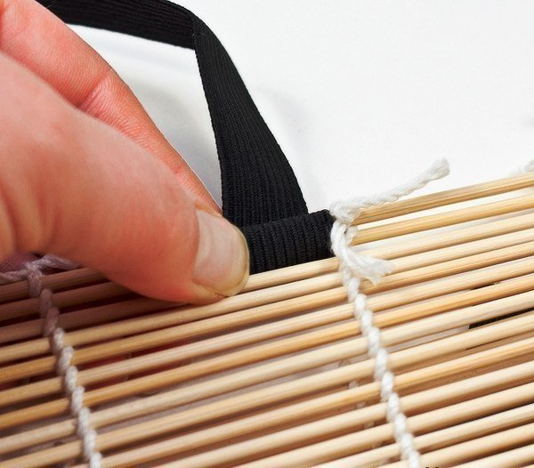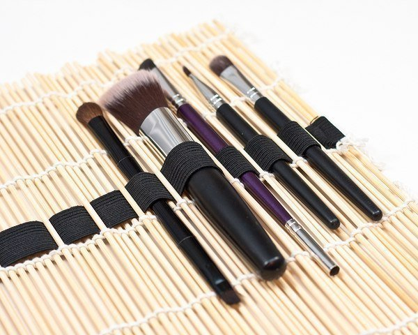 Бамбуковый органайзер для кисточекДля его создания используйте бамбуковую салфетку и широкую резинку.
