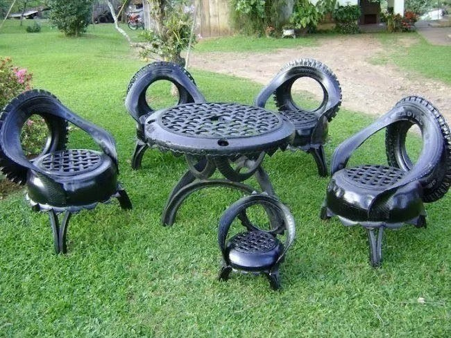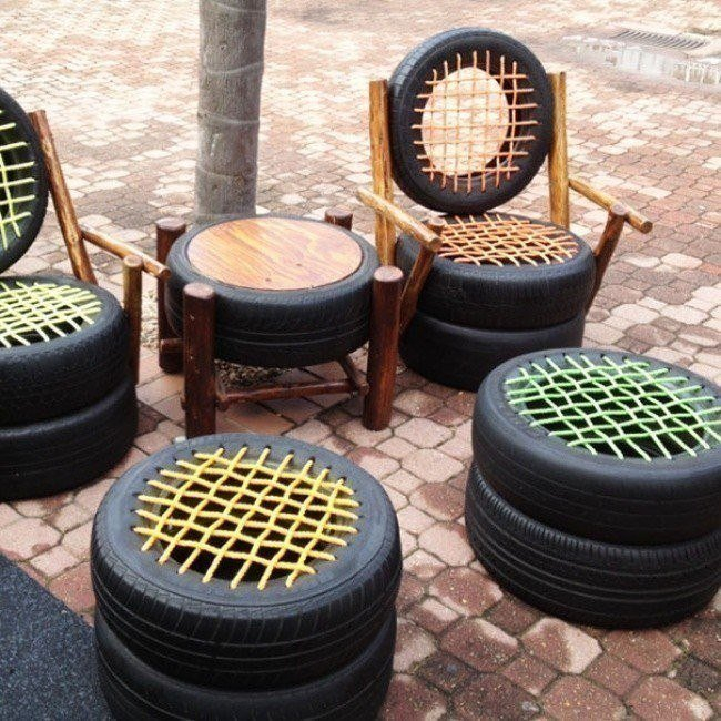 Идеи замечательные,но в доме техническую резину лучше не держать, т.к. выделяются вредные вещества. А вот для дачи это здорово!