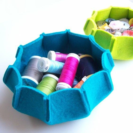 Корзинка из фетра для мелочейВыбирайте расцветки, которые гармонируют с интерьером.Такую корзинку легко стирать как вручную, так и в машинке.