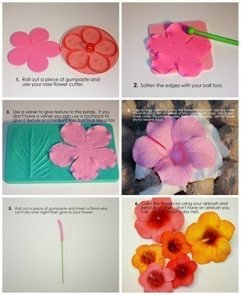 Это кондитерские цветы из мастики. её ничем не надо клеить . Она сама хорошо крепится и, застывая, прекрасно держится. её можно только сломать.
