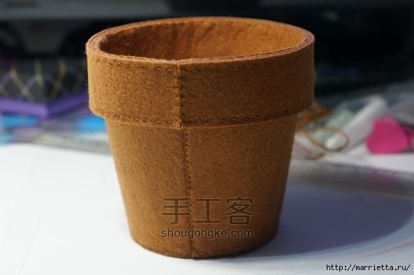 Горшочек с цветами из фетраГоршочек с цветами из фетра это букет, созданный весьма необычным способом.