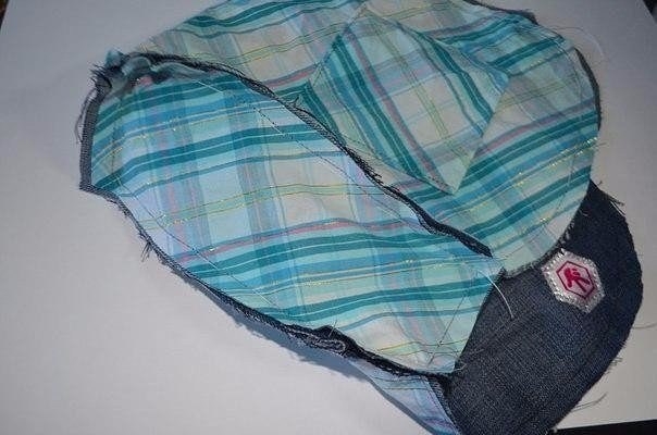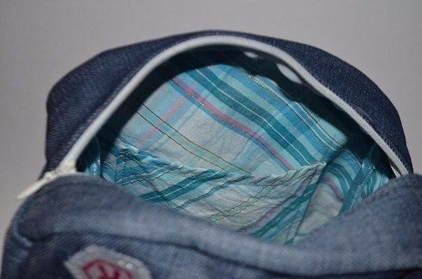 Сумка из старых джинсовДаже карман обрабатывать дополнительно не нужно - все готово заранее.
