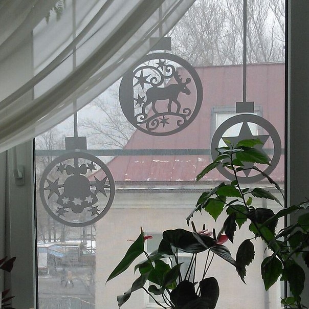 Украшение окон к Новому годуМожно сделать такие украшения из фольги.И даже украсить аналогично проемы дверей.