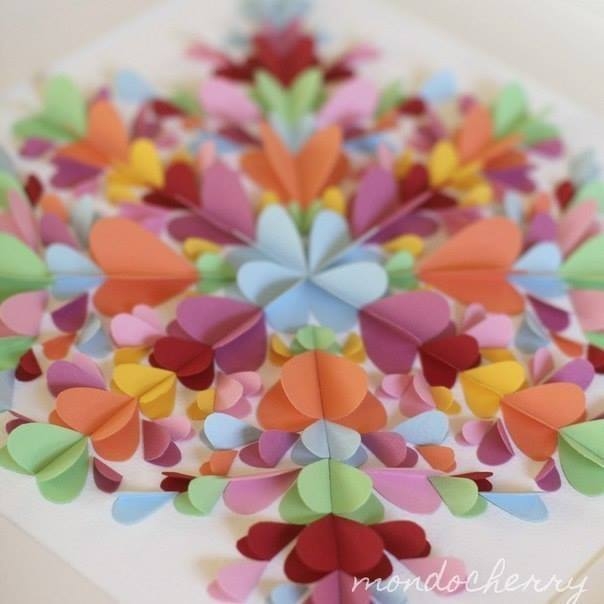 Идея для панно из бумажных сердечек.