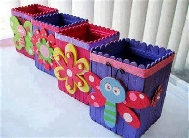 Вазочки из банок и палочек от мороженогоВазочки из банок и палочек от мороженого создаются на основе жестяных банок от консервов.