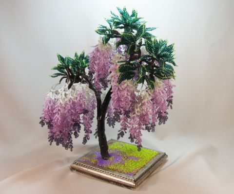 Дерево из бисераДерево из бисера немного похоже на цветущую сакуру.