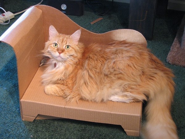 Забавный диванчик, но для Вашего рыжика он должен дыть подлиннее, чтобы котейке было где развалиться и вытянуть лапки...:)