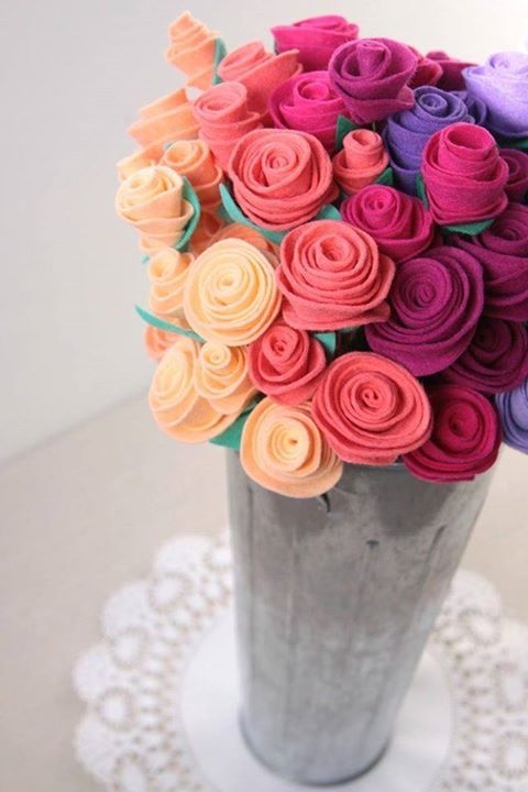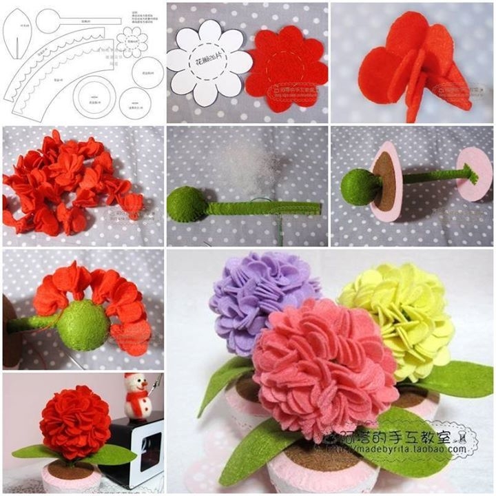 Делаем букет цветов из фетраВоду в такой букет подливать не надо - только стряхивайте иногда пыль.