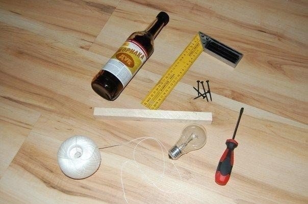 Абажур для светильника из банки, шарика и верёвки для дома простоват,но для дачи идеален.