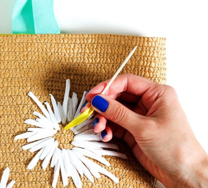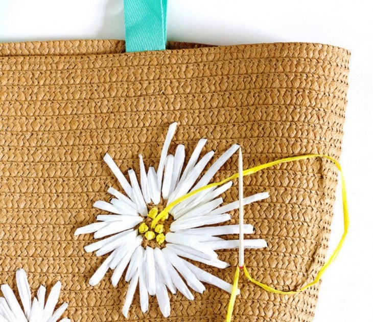 Простая и интересная вышивка на сумкеНеобычность - в простоте. Классная идея для оформления летней сумки проста и доступна в исполнении.