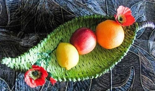 Плетём корзинку из газетных трубочек в форме листаПлетём корзинку из газетных трубочек в форме листа, чтобы красиво положить, например, украшения.