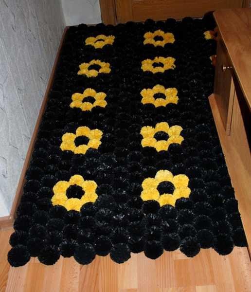 Я так понимаю, что основа - любая сетка, к которой привязывают эти помпоны. Вообще-то не стоящий того головняк, это точно. Но если полиэтиленовых веревок валом, то можно, по бедности. Для одинокой бабушки. В ином случае, то лучше бы уже тогда коврик для ванной. Как разовый, однодневный. И стирать. В коридоре будет смотреться ужасно, особенно,если домочадцев больше 2-х, от постоянного хождения коврик не выдержит, будет заламываться, затаптываться. Какие там помпоны!))