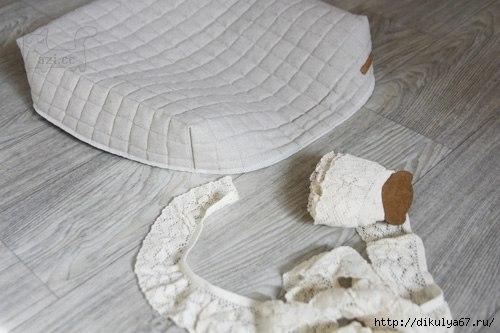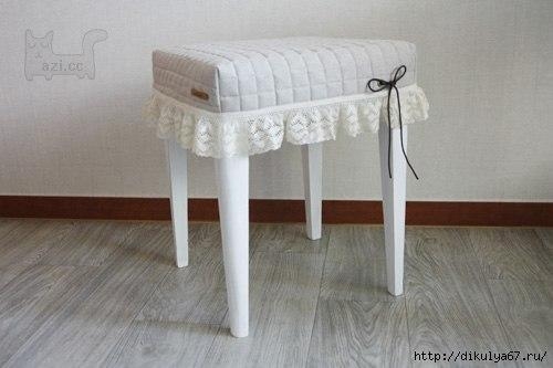 Чехол с кружевом для табуретаЕсли внутри добавить стёжку с синтепоном, табурет станет гораздо мягче.
