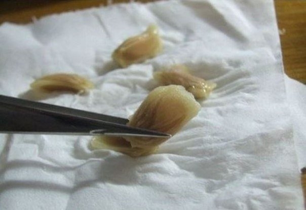 Замачивайте семена в воде в течении недели, меняя воду каждый день. При замачивании семена покроются желеобразной оболочкой. Это нормально.