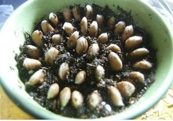 На дно чашки положите немного камней, чтобы создать дренажное отверстие, потом заполните чашку землей, хорошо увлажненной. Семена вставляют в землю заостренным концом вниз, оставляя между ними пространство в 5 мм.