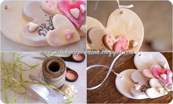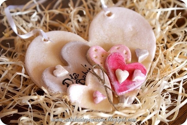 я вот только не поняла сердечки друг другу чем крепятся или тесто само склеивается?