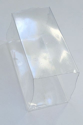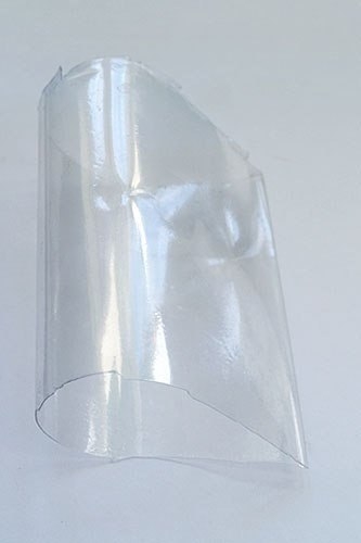 2. Обрежьте от бутылки горлышко и низ. Согните полученную заготовку с одной стороны, а затем с другой стороны, чтоб получился плоский прямоугольник.
