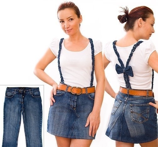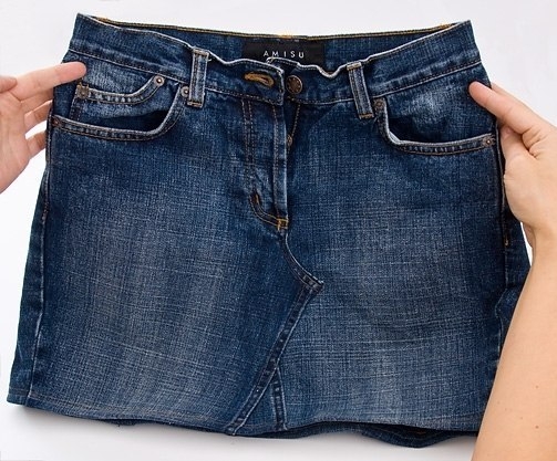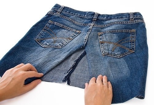 Оригинальная юбка из старых джинсовДаже старым джинсам можно дать вторую жизнь.Важно использовать то, что осталось целым и не протерлось.