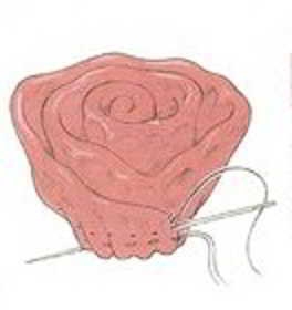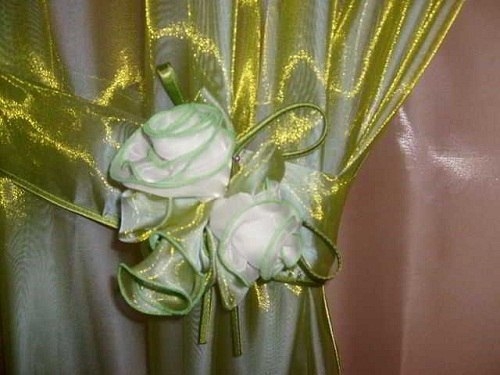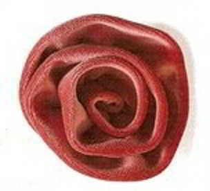 5. Бутон розы из ткани сворачивается так же, как и цветок, но поплотнее ( меньше сборки) и в конце делается сборка побольше, для того, чтобы сделать вид, что лепестки бутона начали раскрываться.