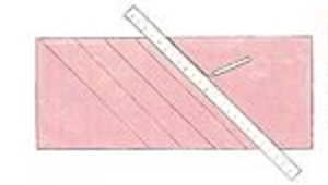 1. Начертите диагональные полосы на куске ткани шириной по 10 см. По одной на каждый цветок из ткани. Длина полоски ткани для цветка должна быть сантиметров 70, для бутона поменьше.(Фото 5)