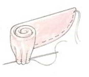 3. Прошейте вручную наметочными стежками нижний необработанный край полосы включая закругленные края, отступая 6мм от края.