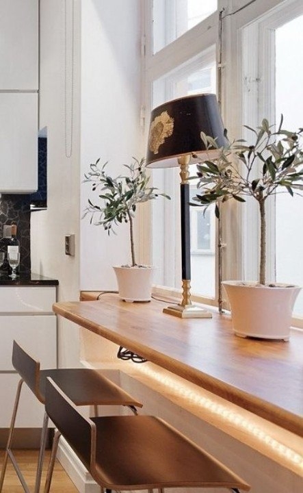 Обалденное решение для маленькой кухни. И красота и удобство и уют в одном флаконе. Браво!!