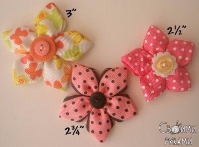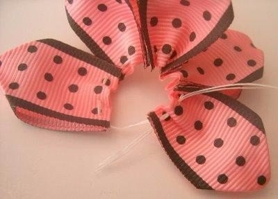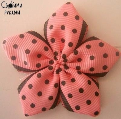 Цветочек из лентМожно сшивать, но удобнее склеить.