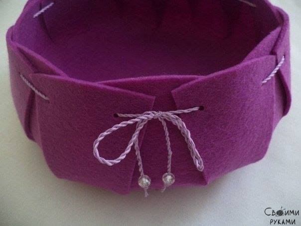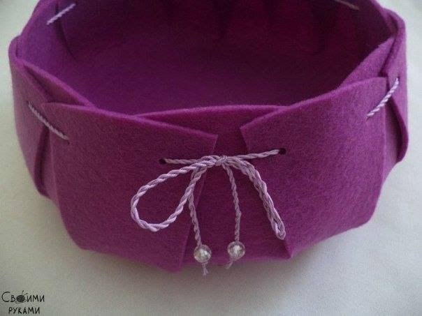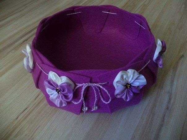 Корзинка из фетра для мелочейВыбирайте расцветки, которые гармонируют с интерьером.Такую корзинку легко стирать как вручную, так и в машинке.