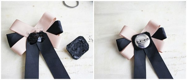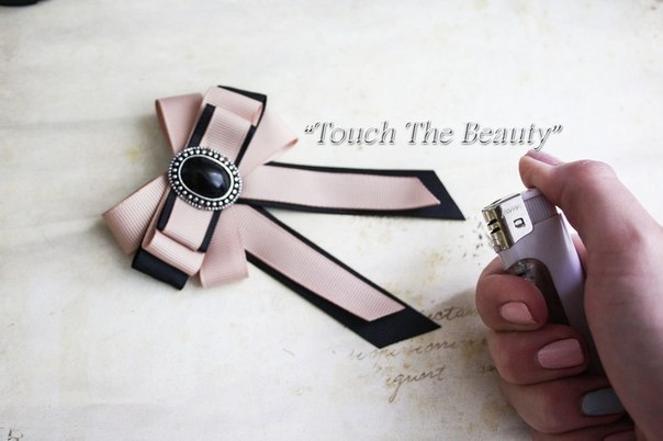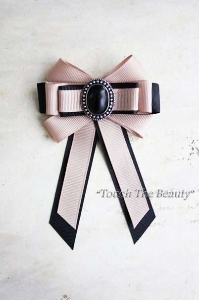 Делаем брошь из лентТакая брошь будет элегантно смотреться вместе бабочки на шее.
