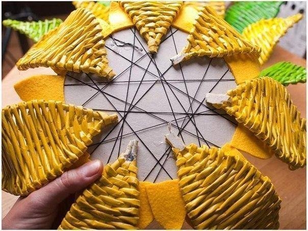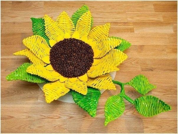 Вазочка Подсолнух из газетных трубочек