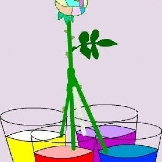 Правильно ли я поняла: стебель разрезается на 4 части и каждая из них опускается в емкость с подкрашенной водой?. А какой краской ее(воду) следует подкрашивать? Акварельными,пищевыми или существуют специальные красители?
