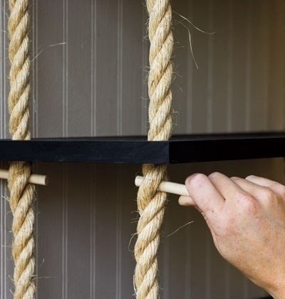 Подвесная полка из дощечек и толстой веревки