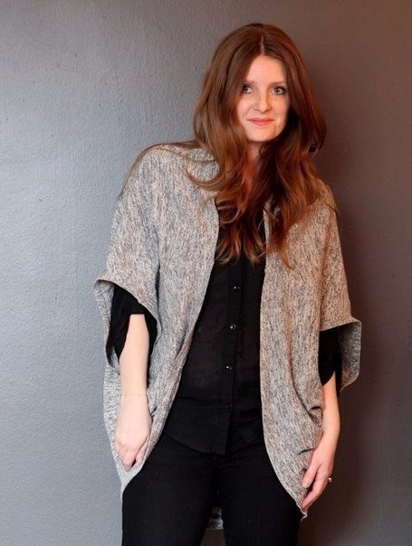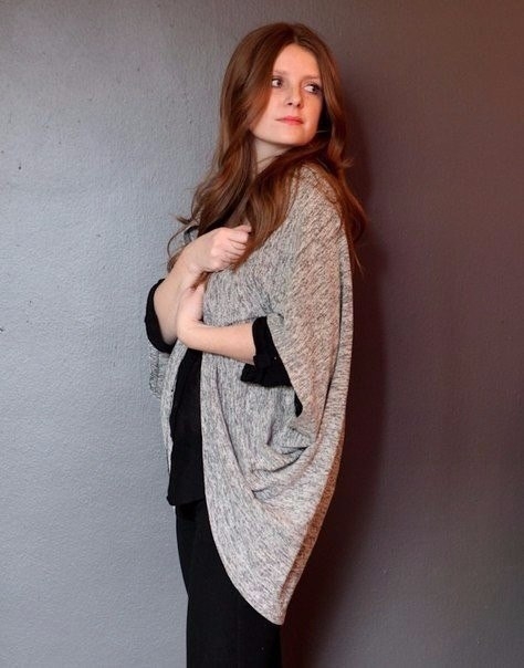 Надо сделать выкройку и прокрутить ее живьем, может тогда и чтото состыкуется, а так по рисункам непонятно. Накидка хороша, а если ее сшить из трикотажа, подобрав цета, то будет класс. У кого получиться---отзовитесь.