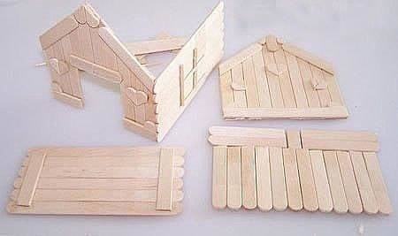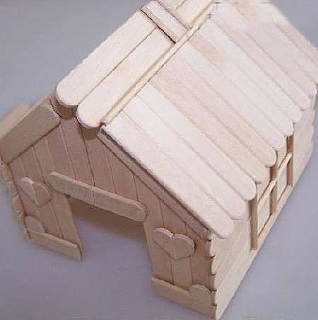 Домик из палочек для мороженогоНам понадобится:палочки для мороженого любого цвета 10 шт.;канцелярский нож;линейка, карандаш, губка, клей;краски акриловые, в том числе серебряная;к...